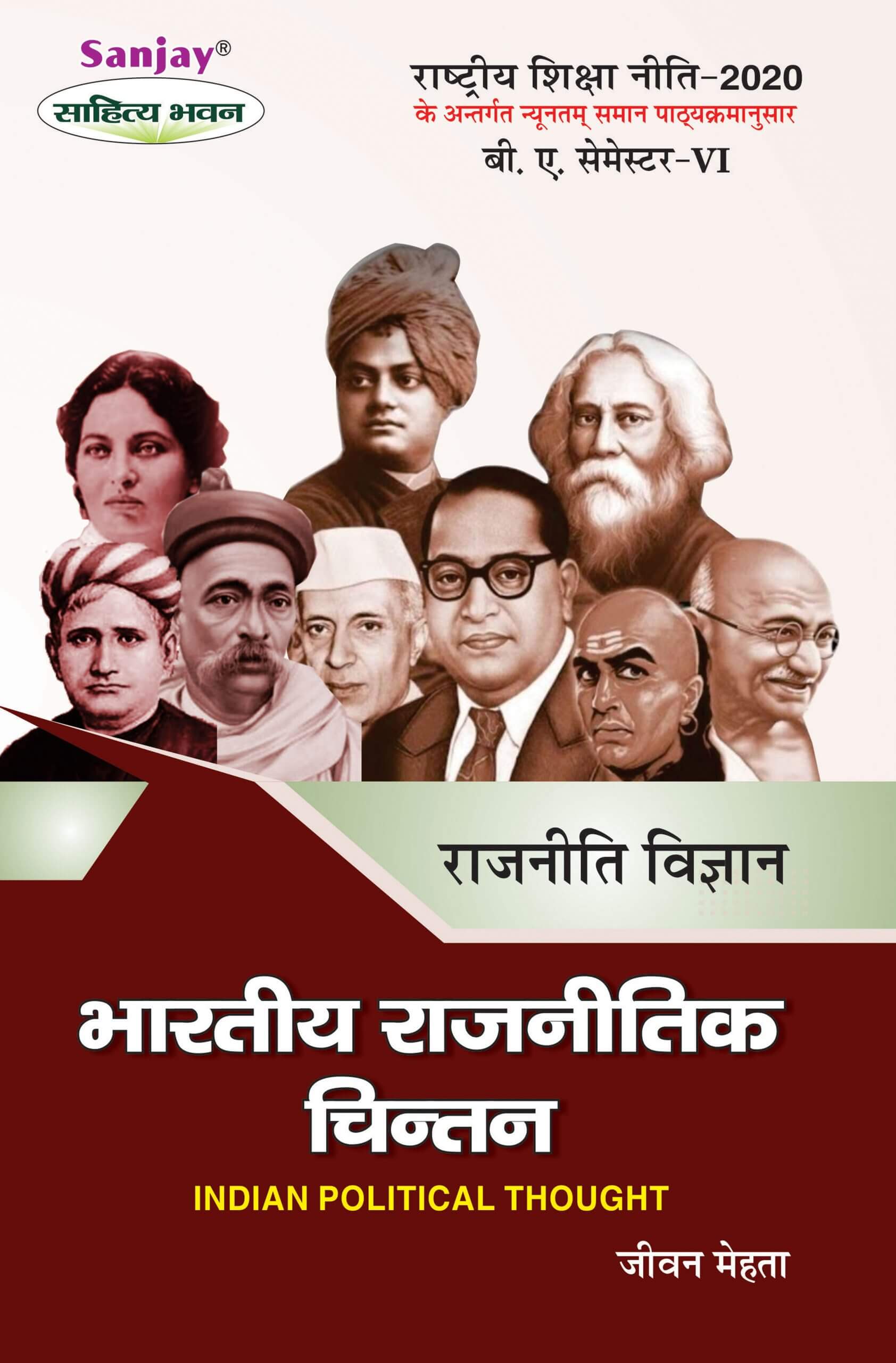 1. प्राचीन भारतीय राजनीतिक चिन्तन - स्त्रोत एवं विशेषताएँ 2. मनु 3. कौटिल्य 4. अग्ग्नना सुत्त 5. जैन परम्पराएँ 6. मध्यकालीन भारतीय राजनीतिक चिन्तन-बरनी 7. अबुल फजल 8. आधुनिक भारत में चिन्तन एवं विचार (सुधार परम्पराएँ) - राजा राममोहन राय 9. महादेव गोविन्द रानाडे 10. सर सैयद अहमद खान 11. स्वामी विवेकानन्द 12. पण्डिता रमाबाई 13. मोहनदास करमचन्द गाँधी 14. पंडित जवाहरलाल नेहर 15. लोकमान्य बालगंगाधर तिलक 16. ज्योतिबा फुले 17. ताराबाई शिंदे 18. डॉ. भीमराव रामजी अम्बेदकर 19. ई. वी. रामास्वामी पेरियार 20. मानवेन्द्र नाथ राय 21. जयप्रकाश नारायण 22. कमलादेवी चट्टोपाध्याय 23. राम मनोहर लोहिया 24. वी.डी. सावरकर 25. एम. एस. गोलवलकर 26. मोहम्मद इकबाल 27. बंकिम चन्द्र चट्टोपाध्याय 28. रबीन्द्रनाथ टैगोर 29. आनन्द कुमारस्वामी |