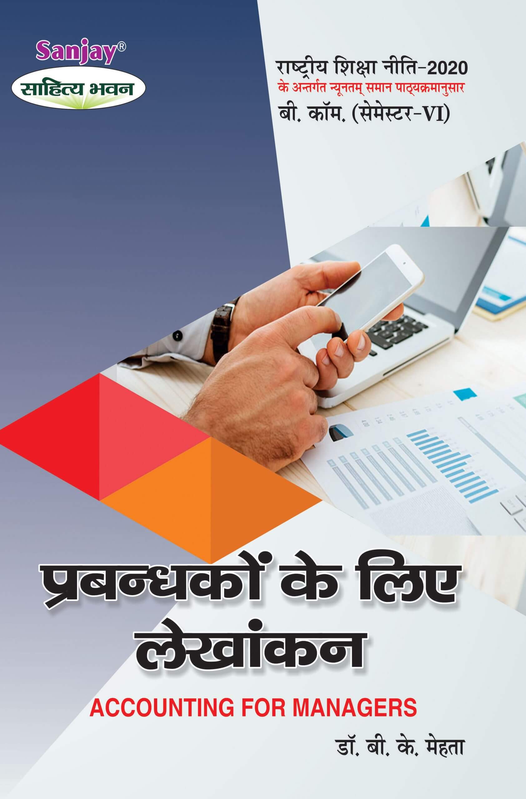 विषय सूची :- 1. प्रबन्धकीय लेखाविधि-परिचय 2. वित्तीय विवरणों का विश्लेषण एवं निर्वचन 3. अनुपात विश्लेषण 4. कोष-प्रवाह विवरण 5. रोकड़-प्रवाह विवरण (लेखांकन मानक 3 के आधार पर) 6. व्यावसायिक बजटन 7. स्थिर एवं लोचदार बजटन 8. शून्य आधार बजटन 9. निर्णयन लेखांकन एवं सीमान्त परिव्ययन 10. सम-विच्छेद-बिन्दु/खण्ड-सम-बिन्दु अथवा लागत-मात्रा लाभ विश्लेषण 11. प्रमाप लागत तथा लागत अन्तर विश्लेषण 12. प्रबन्ध सूचना प्रणाली एवं प्रबन्ध हेतु प्रतिवेद |